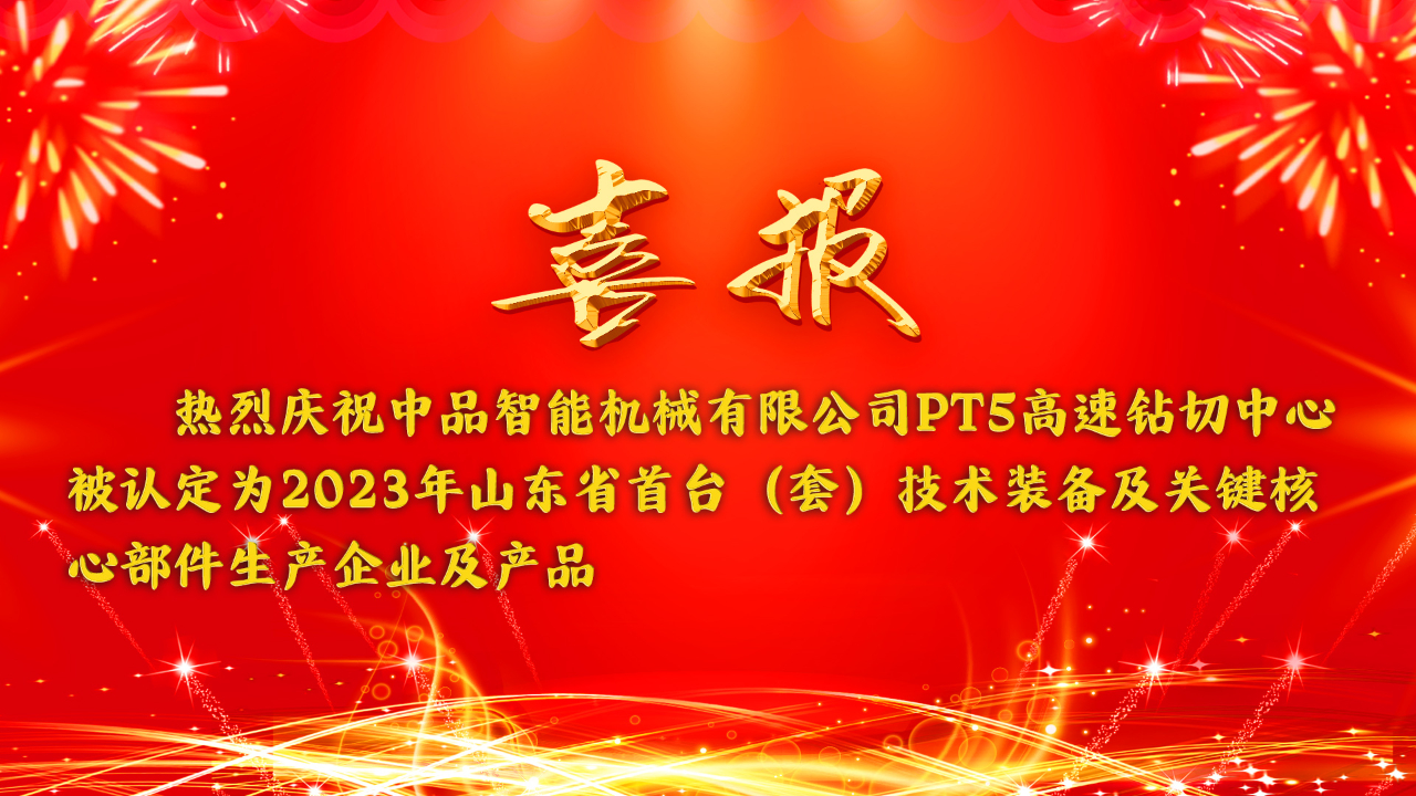 喜報!熱烈慶祝中品智能機械有限公司PT5高速鉆切中心被認(rèn)定為2023年山東省首臺(套)技術(shù)裝備及關(guān)鍵核心部件生產(chǎn)企業(yè)及產(chǎn)品