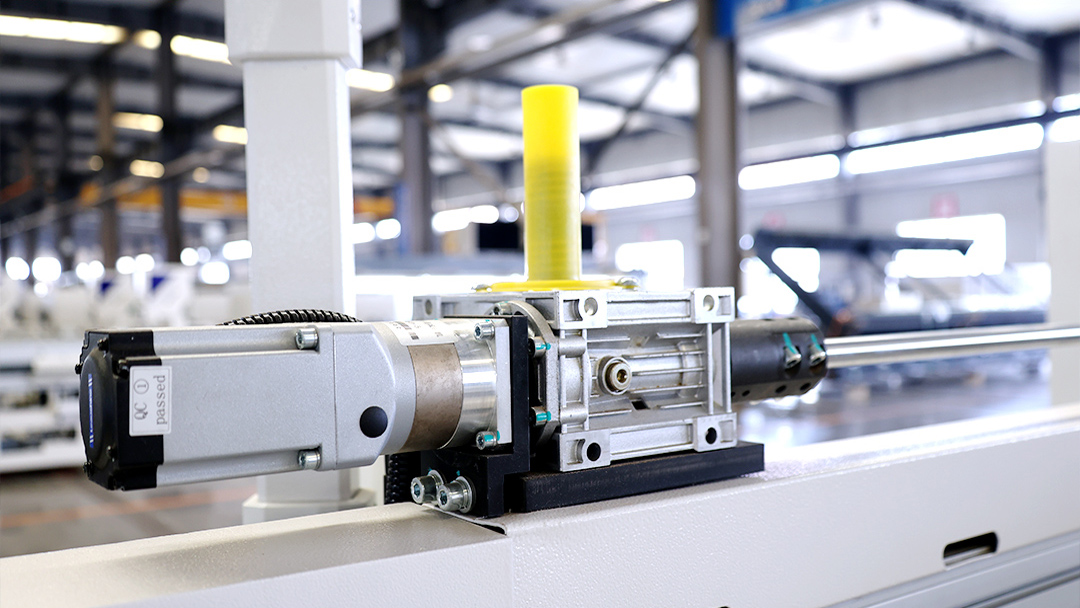 齊頭電機(jī)可45°轉(zhuǎn)動(dòng),實(shí)現(xiàn)垂直邊和斜邊齊頭,伺服電機(jī)精準(zhǔn)控制,響應(yīng)速度快,切割精準(zhǔn),切割斷面平滑,無(wú)毛刺。