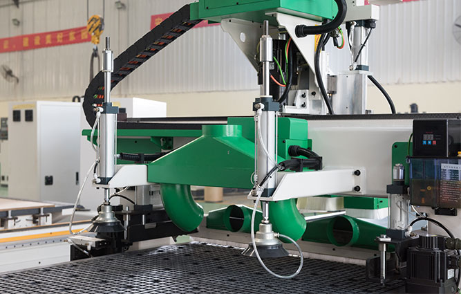 機器配備一套意大利進口(5+4)9V排鉆包,專業(yè)解決柜體生產(chǎn)時的孔位問題,同時機器擁有兩套6KW主軸分別對板材進行拉槽和開料切割。目前此機型主要搭配紅外側(cè)孔機進行板式家具生產(chǎn),每天八小時的加工產(chǎn)量可以達到60多張板左右。機器加了自動上下料功能能夠減輕人工勞動的負荷量,提高機器的加工效率,自動化程度高。